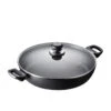 - Comes with two handles for stability when lifting and carrying; and a glass lid that traps flavour into your food and lets you see your cooking progress