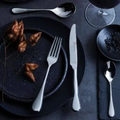 This contemporary 56-piece cutlery set by Stanley Rogers is forged from premium stainless steel and has a high quality mirror finish. The classic stainless steel not only looks stunning sitting alongside all types of crockery, but also makes an extra-special wedding present or housewarming gift. The formal setting is for eight people, making it the best option for special occasions and gatherings.