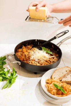 The durable hard anodised exterior is harder than steel ensuring a lifetime of professional results. Accented by stylish stainless steel handles and other key features, Cuisinart Chefs iA+ Non-stick Hard Anodised Cookware offers the ultimate in form and function. Three layer, PFOA free Whitford Quantanium non-stick interior coating provides lasting food release, healthy non-fat cooking options and easy clean up. Its oven safe to 220℃ and it is suitable for all heat sources, including induction. The pan is also dishwasher safe for ease and practicality.