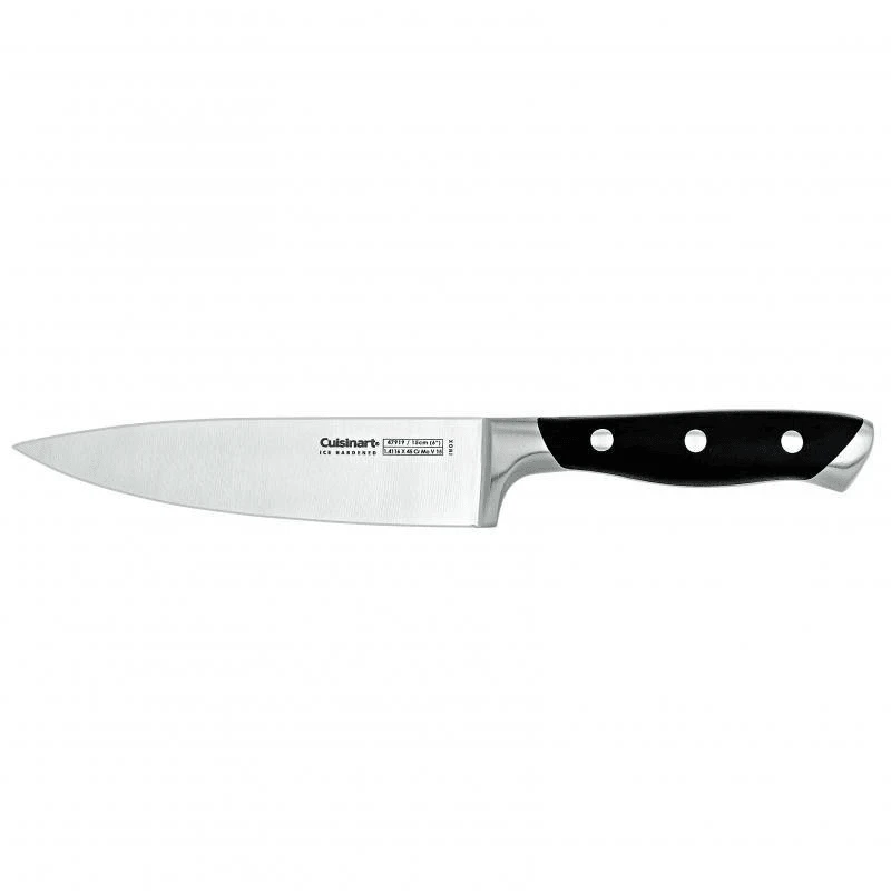 The Cuisinart Cooks Knife is your basic, all-around tool to handle all cutting, chopping and slicing tasks efficiently and quickly. The full-tang blade, is made of high quality ice hardened German stainless steel for maximum durability. At 15 cm long, the knifes razor-sharp edge is hand ground at 20 degrees. Get only the best with Cuisinart!