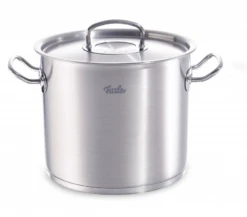 The high stainless-steel stew pot, which is also suitable for induction hobs, is an ideal helper on those days when you want to cook more than the usual amount. The wieldy handles mean even the largest of the large, with a capacity of 14 liters, can be lifted and carried safely.
