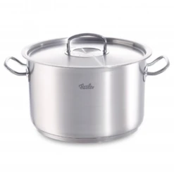 Fissler – Fisslers original pro collection is a great choice for ambitious cooks. The robust stainless-steel pots, were developed by professionals for professionals. This extensive collection contains the right model for every task. All products are made of high-quality 18/10 stainless steel, making them not only suitable for use in the oven, but also resistant to scratches and stains. The energy-saving cookstar all-stove base can be used on all stoves, including induction, and ensures optimal heat absorption, distribution and retention.