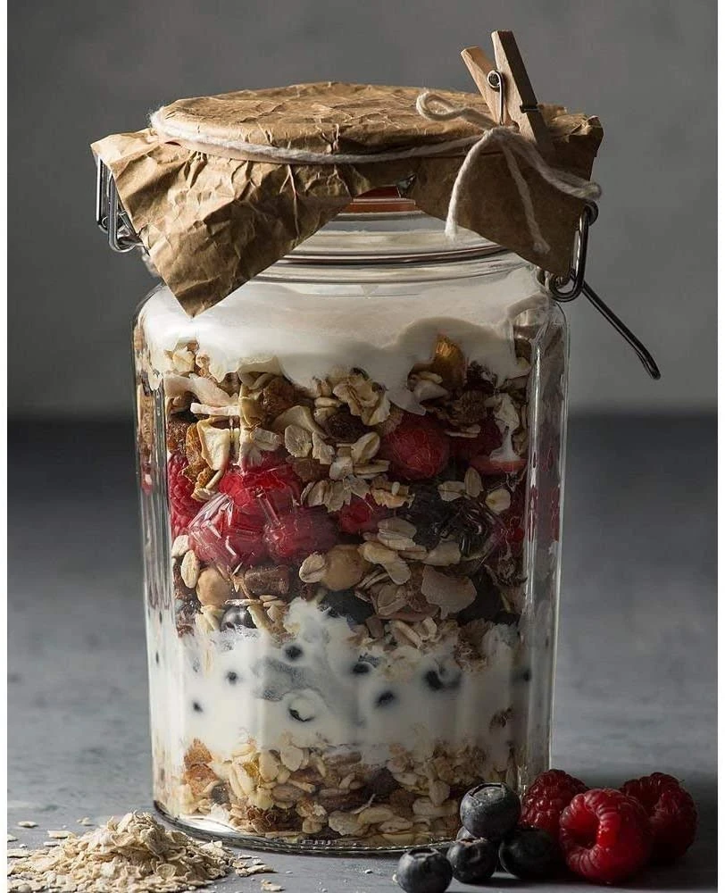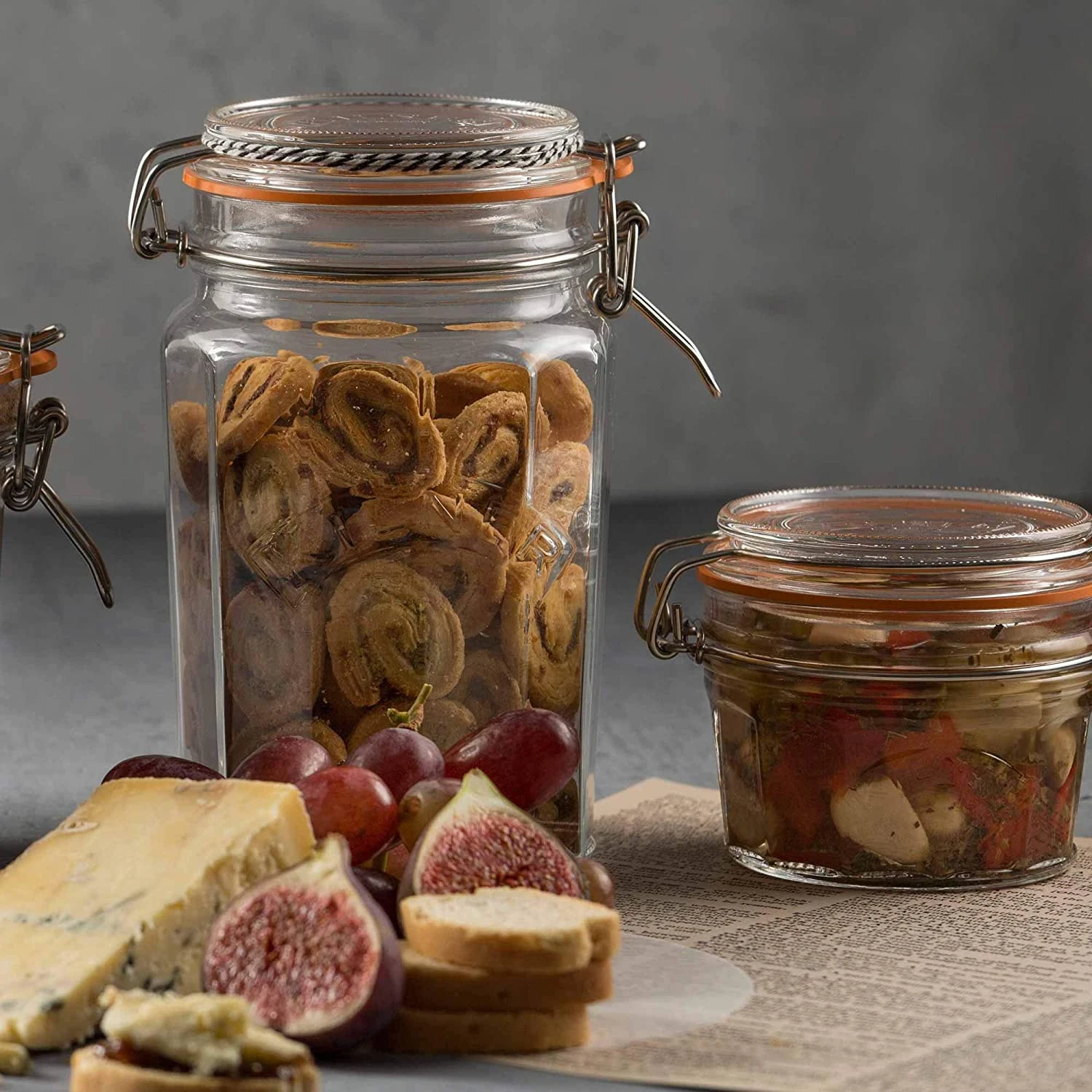 The new facetted Kilner jar adds to the ever-popular clip top jar range and is a unique twist to the round and square clip top jars, with a silicone seal and clip system to keep food airtight and fresh. Perfect for dried foods, preserves, sweets, or cookies.