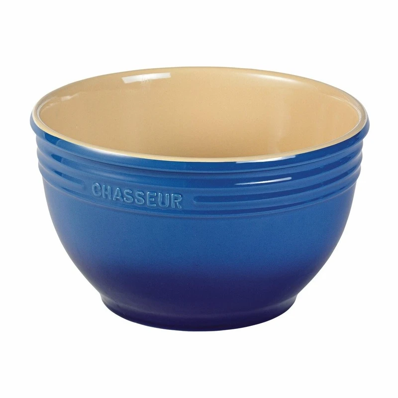 Mix marinades, cake batters, or dough with this generously sized Chasseur Mixing Bowl. Its grooved rim adds grip, while the enamelled surface ensures effortless clean-up. Made to withstand varying temperatures, this bowl is also safe for microwave, freezer, and oven use.