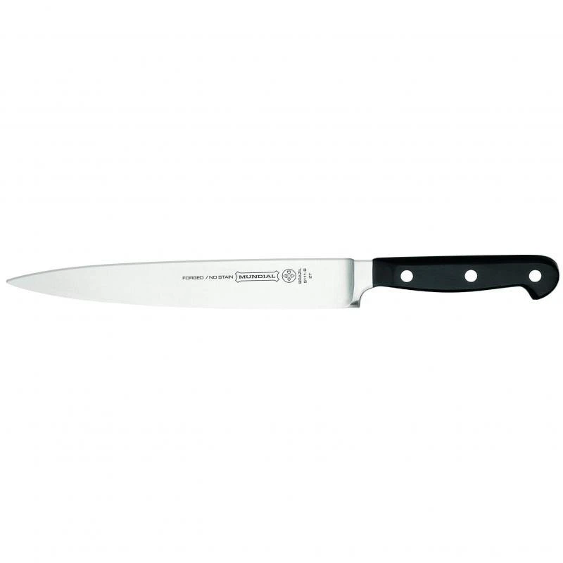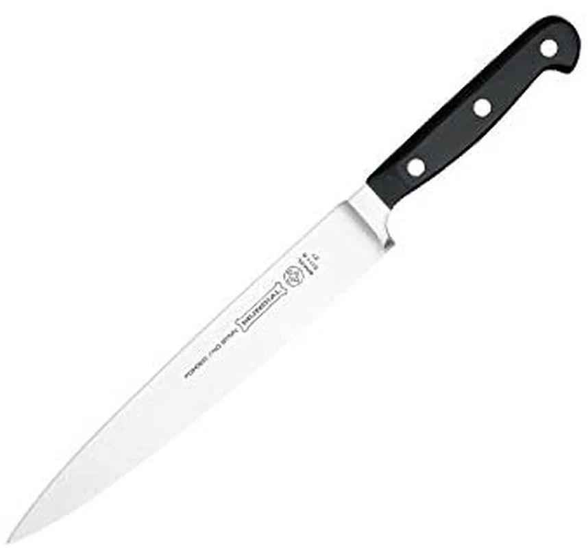 This Mundial Carving Knife does the tricky task of carving roasts nicely. Made from fully forged, high carbon CrMo stainless steel, the full tang knives feature razor sharp edges double ground at 20 degrees. Expertly balanced and made to last, Mundial’s traditional European knives are covered by a lifetime warranty.