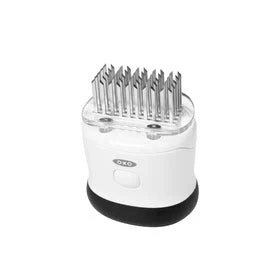 The Oxo Good Grips bladed meat tenderiser has five sharp blades and is specially designed to make meat more succulent. It works by creating tiny pockets so the meat can quickly absorb marinades and retain its juices.