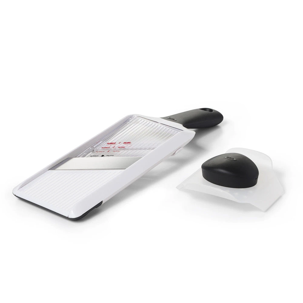 Create perfect and even slices using the Oxo Hand Held Mandoline Slicer.