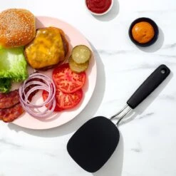 Flips delicate foods with ease, won’t damage non-stick. Our Large Nylon Flexible Turner is perfect for flipping fragile foods while keeping them intact. Large enough to accommodate fish filets, omelets, crepes and more. The flexible nylon head easily slides beneath foods in saut pans or on cookie sheets and is high heat-resistant.