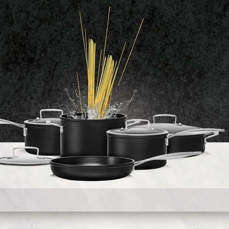 Set up your kitchen with this heavy duty set of Ignite Cookware from Pyrolux to provide even heat distribution as you cook. Induction compatible and suitable for all cooktops, each piece in this five-piece collection will let you stew, casserole, fry and boil. The superior non-stick coating allows a high heat tolerance and is dishwasher safe too.
