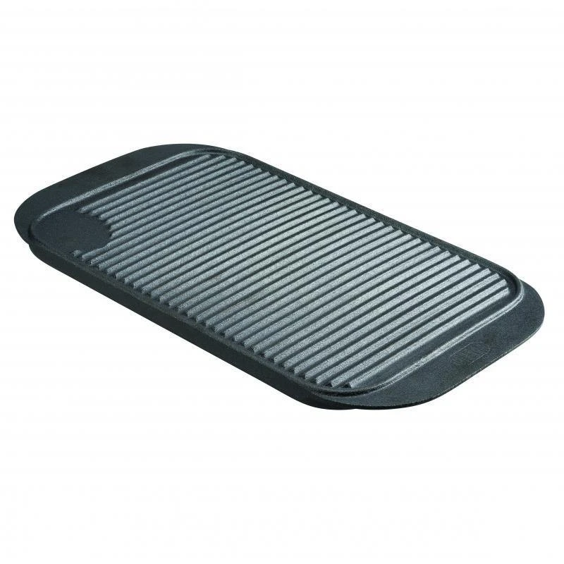 Pre-seasoned for use and made for tough jobs, this generously sized Pyrolux Pyrocast Rectangular Grill Tray is suitable for use on all cooking surfaces from induction to open fire. Deeply ribbed on one side and flat on the other, this grill tray lets you achieve perfect barbecue grill marks for an outdoor lunch or cook fluffy pancakes for breakfast. Not only perfect for high-temperature cooking, but it also comes with lifting handles at either end for ease of use.