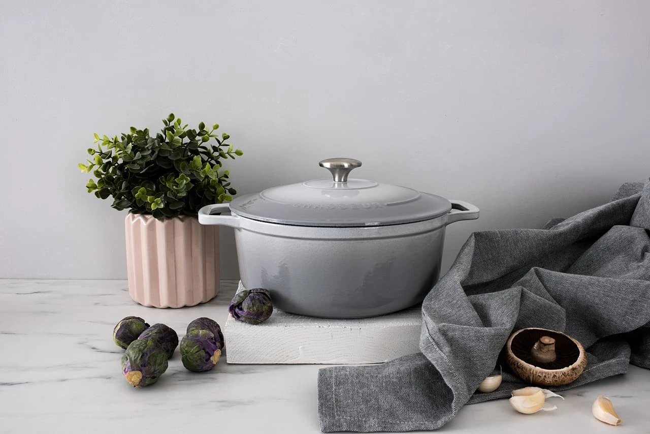 - Made of lasting enamel cast iron for even heat distribution, better heat retention, and prevention of hot spots