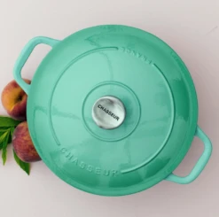 - Expertly coated with two layers of enamel by hand to protect each piece from corrosion, make it easy to clean, and give the distinct Chasseur coloured finish