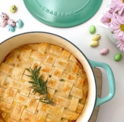 The enamelled finish of the Chasseur Round French Oven creates a non-porous surface making cleaning up a breeze as food resists sticking and burning, and unlike traditional cast iron there’s no seasoning required. Stylish, comfortable handles make it safe and easy to transfer from stovetop to oven to table. Made from cast iron, it’s incredibly heat retentive, which means even cooking and browning. Plus, it’s easy on the eye; the striking imperial blue colour will have this kitchen staple sitting pretty on your stovetop all year round.