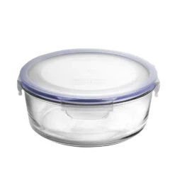 Glasslock Tempered Glass Round Food Container is a reliable food storage container made from durable tempered glass. The containers are incredibly convenient and versatile and can be used for cooking, serving, and storing. The collection features that stack up neatly on top of each other, eliminating cupboard mess and bringing order to your refrigerator. The snap-lock lid system incorporates silicone seals which make the vessel airtight and leak-proof. The full perimeter locking action which is quick and easy to use, will not only keep food fresh for longer but will also assist in eliminating any odors and spills. Adaptable for kitchen appliances: Microwave, Fridge, Freezer, Dishwasher safe. Eco-friendly: Recyclable, estrogen, dioxin, etc. Set contains 1 Food Storage Container with corresponding BPA-free Clip-lid Temperature range: – 20 degree Celsius up to 120 degrees Celsius.