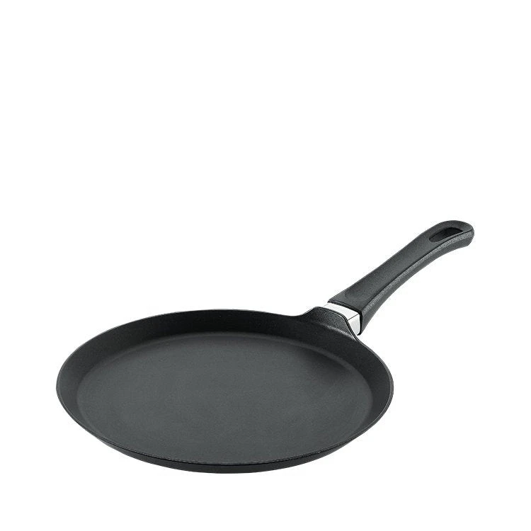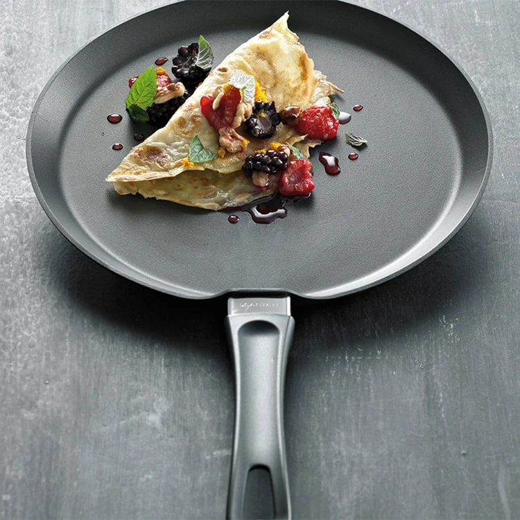 Crepes for brunch? This 25cm Scanpan Classic Crepe Pan makes it effortless to cook and flip your thin pancakes. Thanks to its non-stick surface and sloped edges, your batter cooks to perfection, ready for your delicious fillings. Master both sweet and savoury crepe recipes with this one dependable breakfast maker from Scanpan.