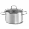 This Scanpan Impact Covered Casserole 4.5L is constructed from heavy gauge 18/10 stainless steel and impact bonded to a thick steel-clad base with a 5mm aluminium core that provides even, steady heating on all cooking surfaces, including induction. Scanpan Impact features a stylish two-tone finish, rugged stainless steel handles, and tempered glass lids that let you see the food you’re cooking.