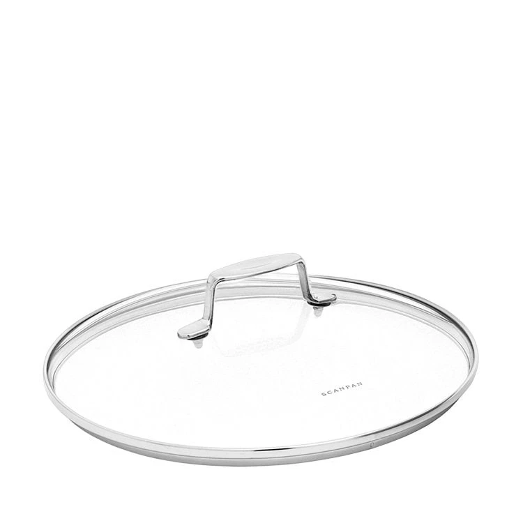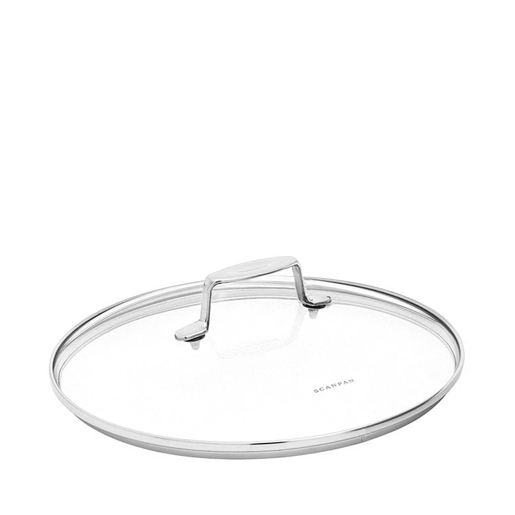 Cover your Scanpan with this tempered glass lid, with riveted stainless steel handle, providing a secure cover for reductions, stewing and sauteing. Sits firmly in the rim, and allows easy monitoring of your delicious chasseur or goulash.
