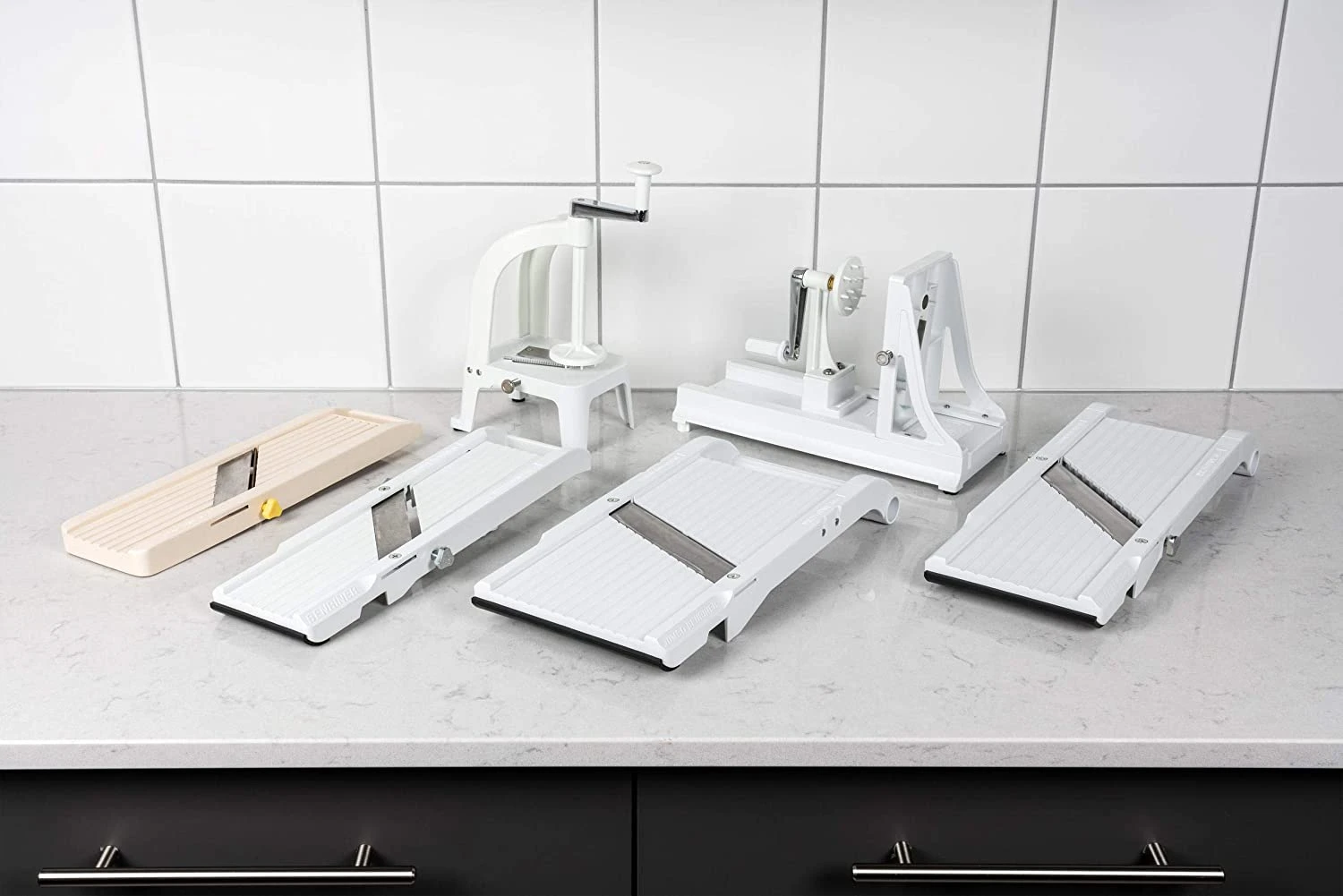 - Japanese engineered blades are quick and easy to change, ideal for potatoes, cucumbers, carrots, apples, onions, and more!